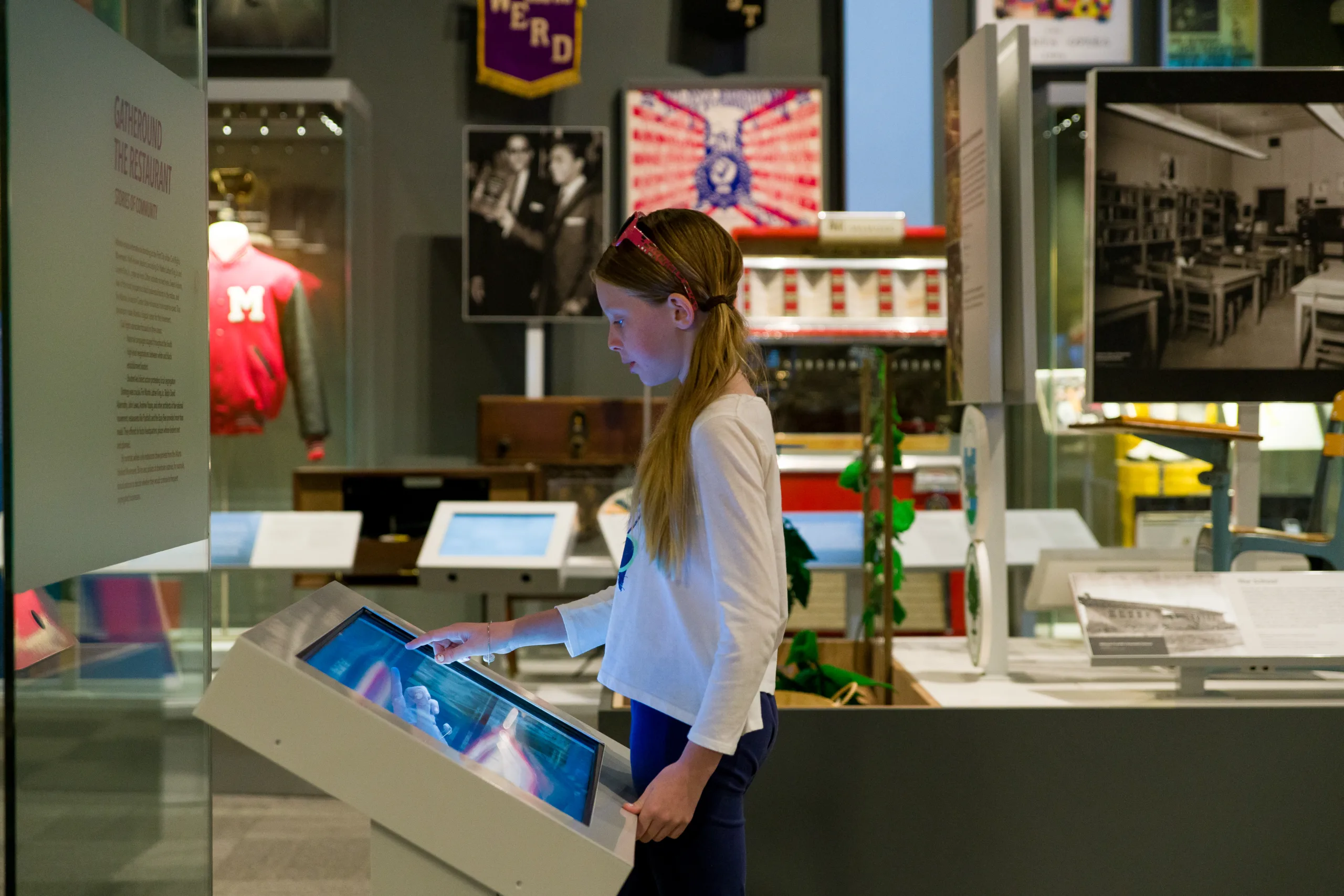 Building on the center’s commitment to inclusion, RWD developed a suite of media interactives that inspire intellectual, emotional, and creative engagement. A “Share Your Story” recording booth allows visitors to reflect and leave a photo or message for future guests. A dynamic media wall showcases historical and contemporary narratives, while digital kiosks expand on exhibit content with quizzes and interactive experiences. Hands-on activities, such as lifting a kettle like a washerwoman, bring historical experiences to life for visitors of all ages.