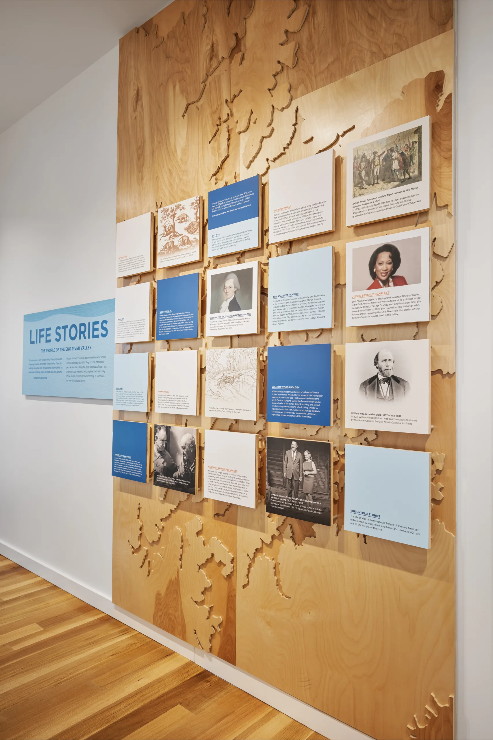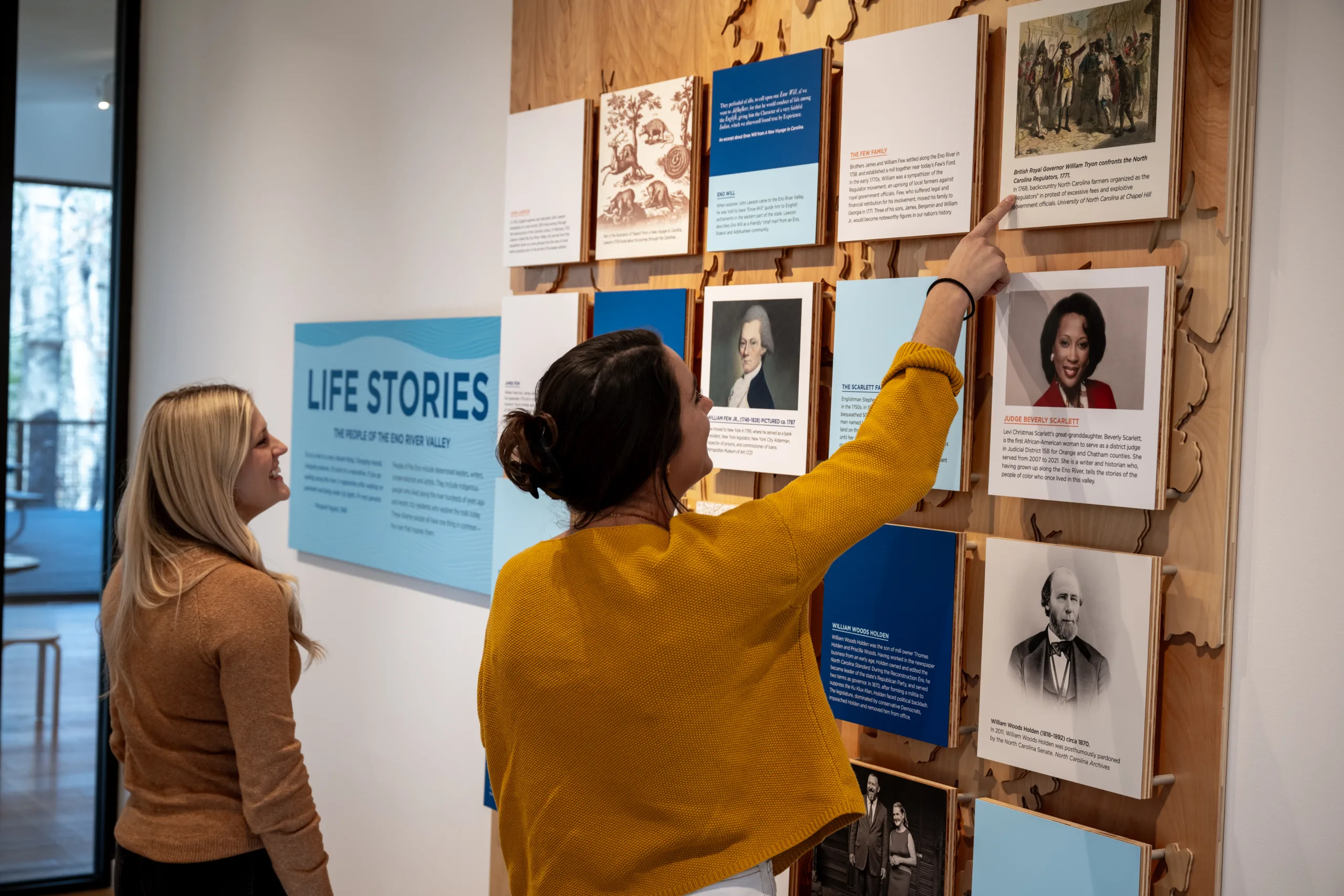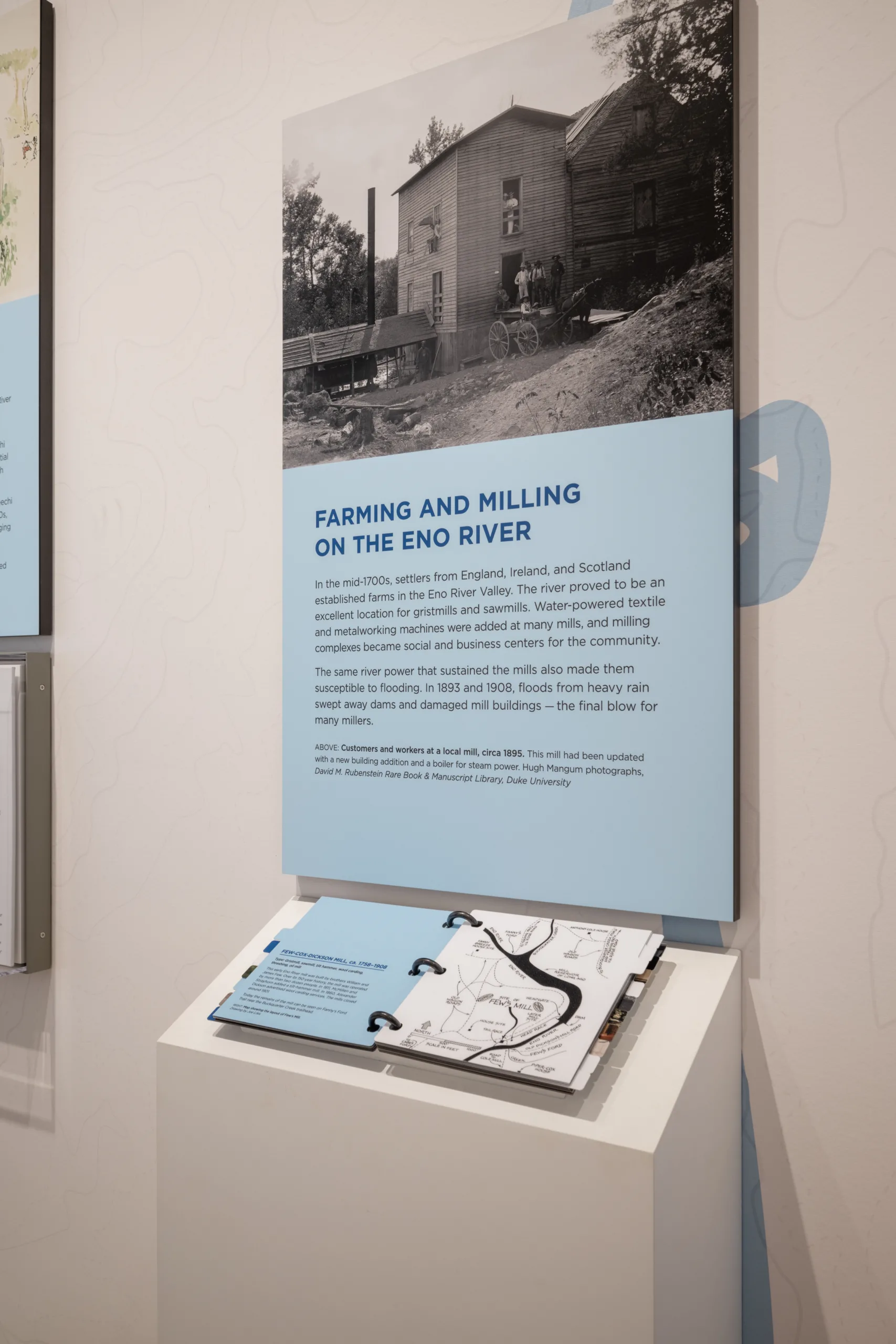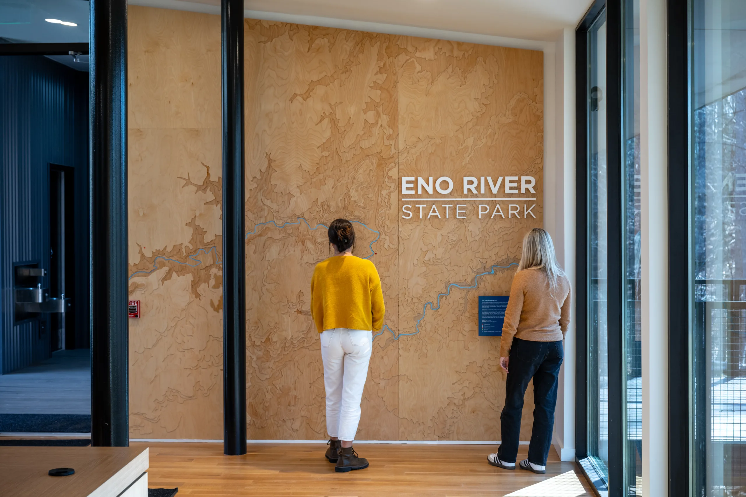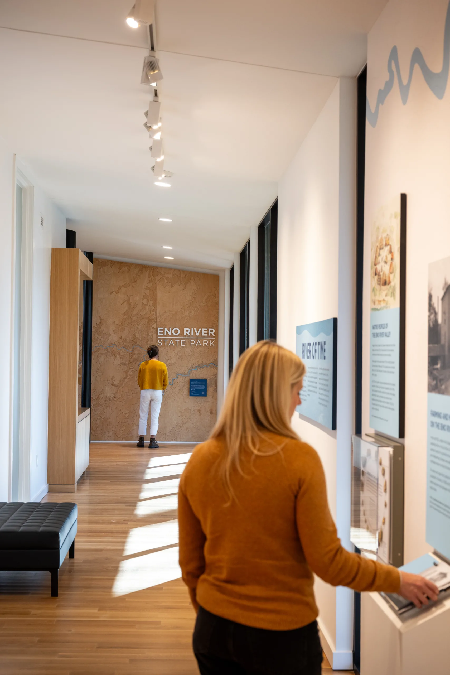 Riggs Ward Design created interactive and participatory exhibits for Eno River State Park that support a wide range of visitor interests and learning levels. Designed to let guests set their own pace, whether skimming headlines or diving deep, the experience encourages exploration of the river’s rich history and natural complexity.