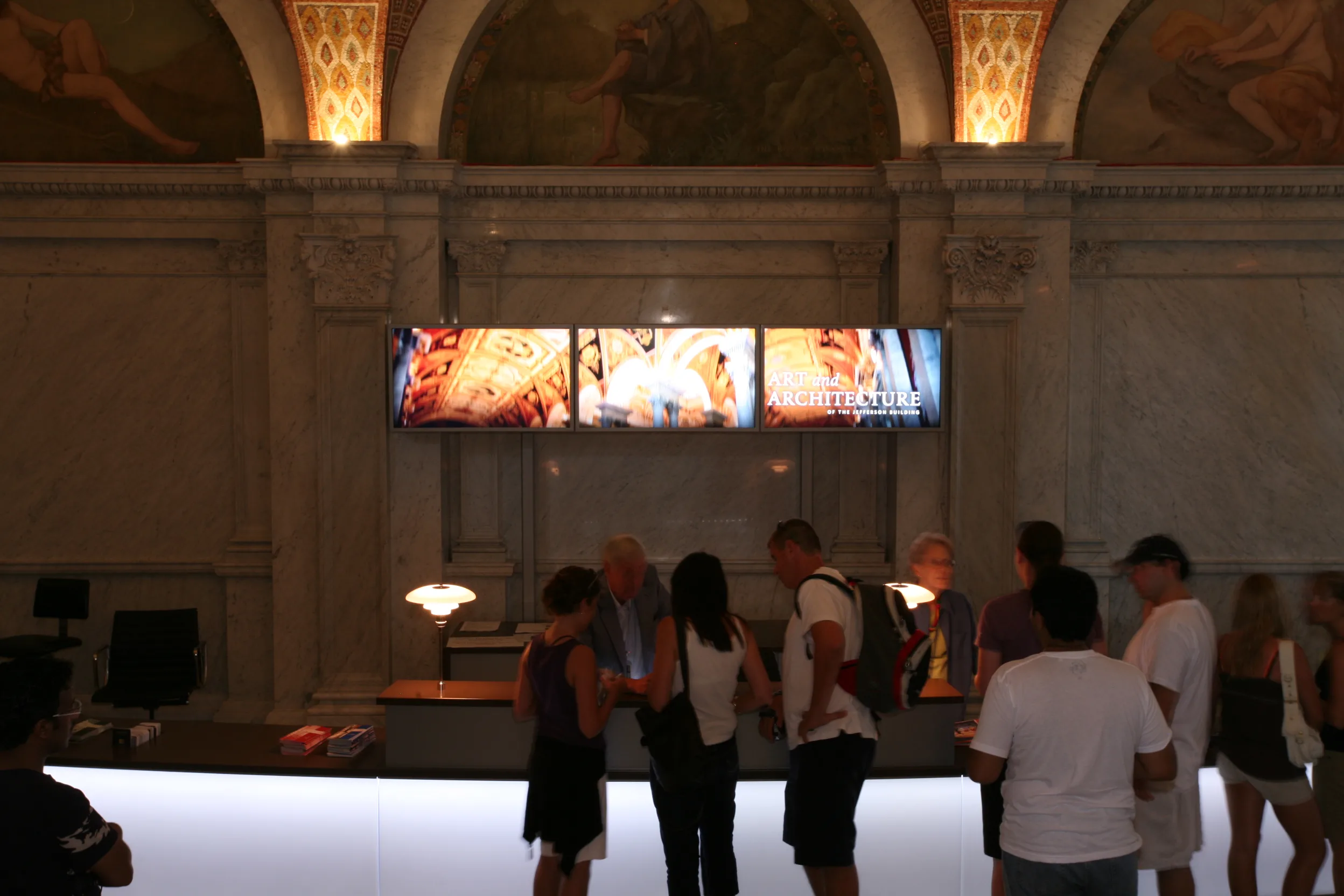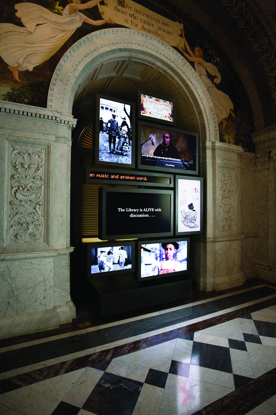 Key features include custom cases designed specifically for the Library by Michael Graves and strategically placed interactive media. Together, these elements create a balance of historical preservation and modern technology, supporting the Library’s goal of making its collections relevant, engaging, and accessible to a wide audience.