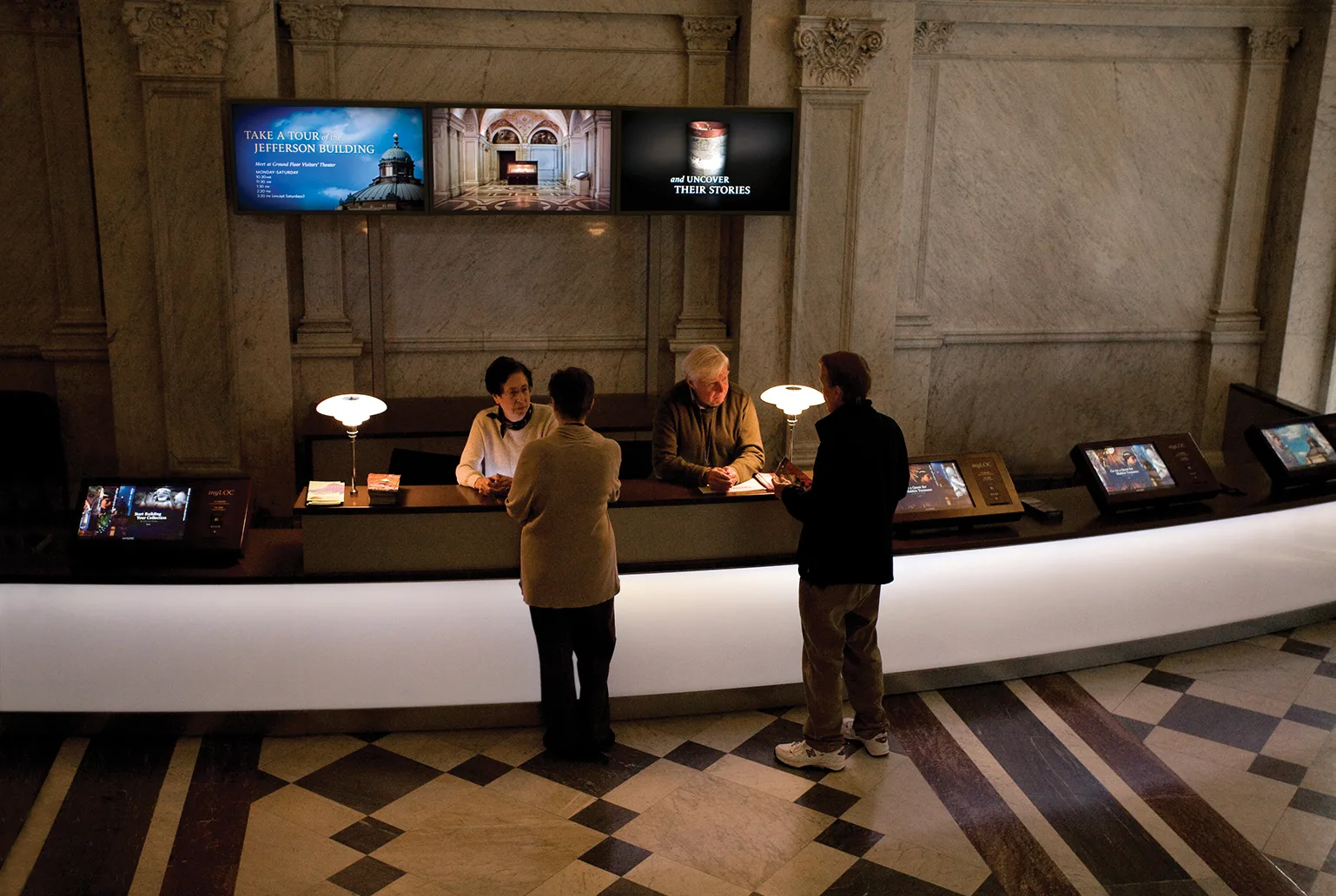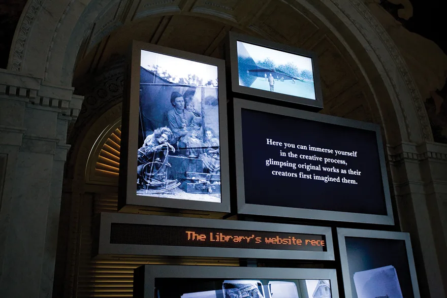 RWD’s designs blend traditional and contemporary elements to create a cohesive visitor experience. Custom artifact and panel displays sit alongside interactive stations that allow guests to electronically record items of personal interest, while digital monitor collages provide dynamic storytelling opportunities. Every element, from orientation desks to signage to exhibition layouts, was carefully considered to connect the Library’s rich history with innovative design.