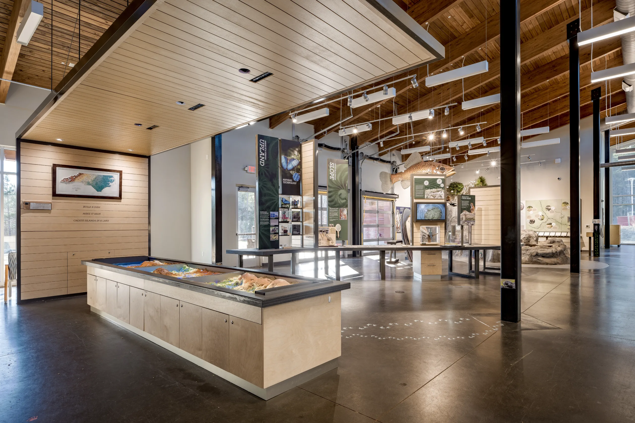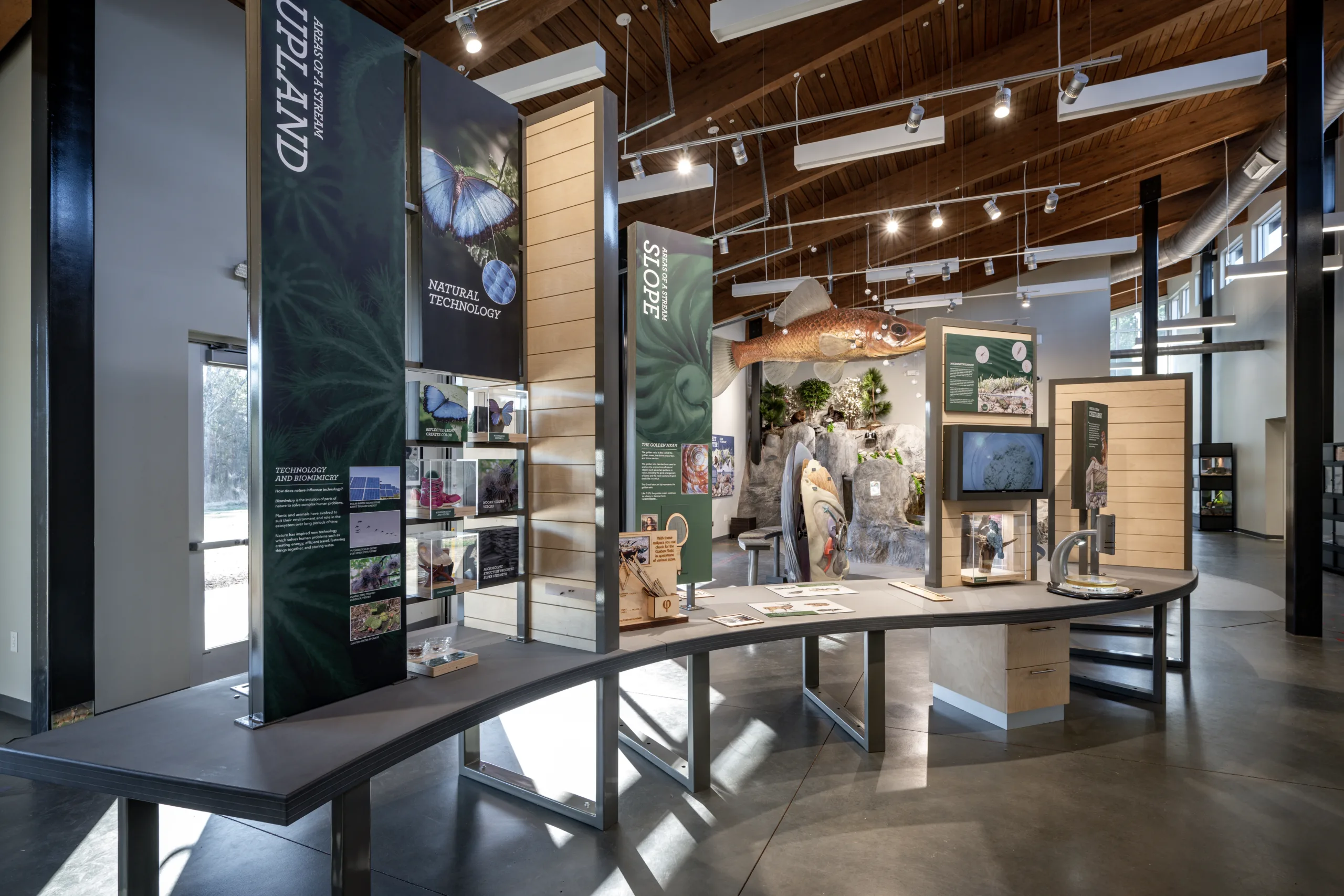 Riggs Ward Design created a playful, hands-on exhibit for the Stevens Creek Nature Center, a 281-acre preserve that includes forest, creek, and garden environments. The new exhibit is designed to spark a sense of wonder and curiosity, inviting visitors of all ages to explore the natural features of North Carolina through interactive learning and imaginative displays.