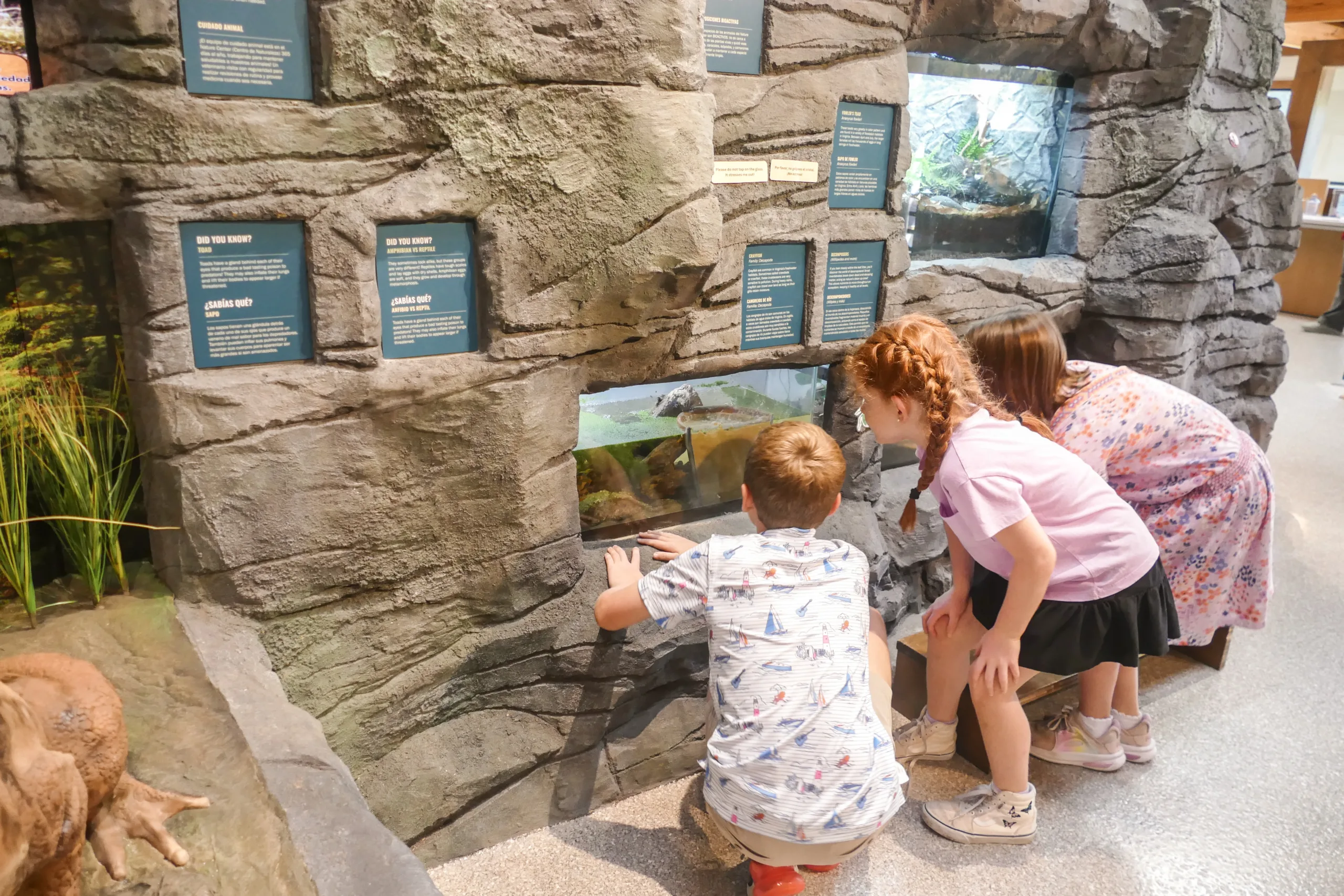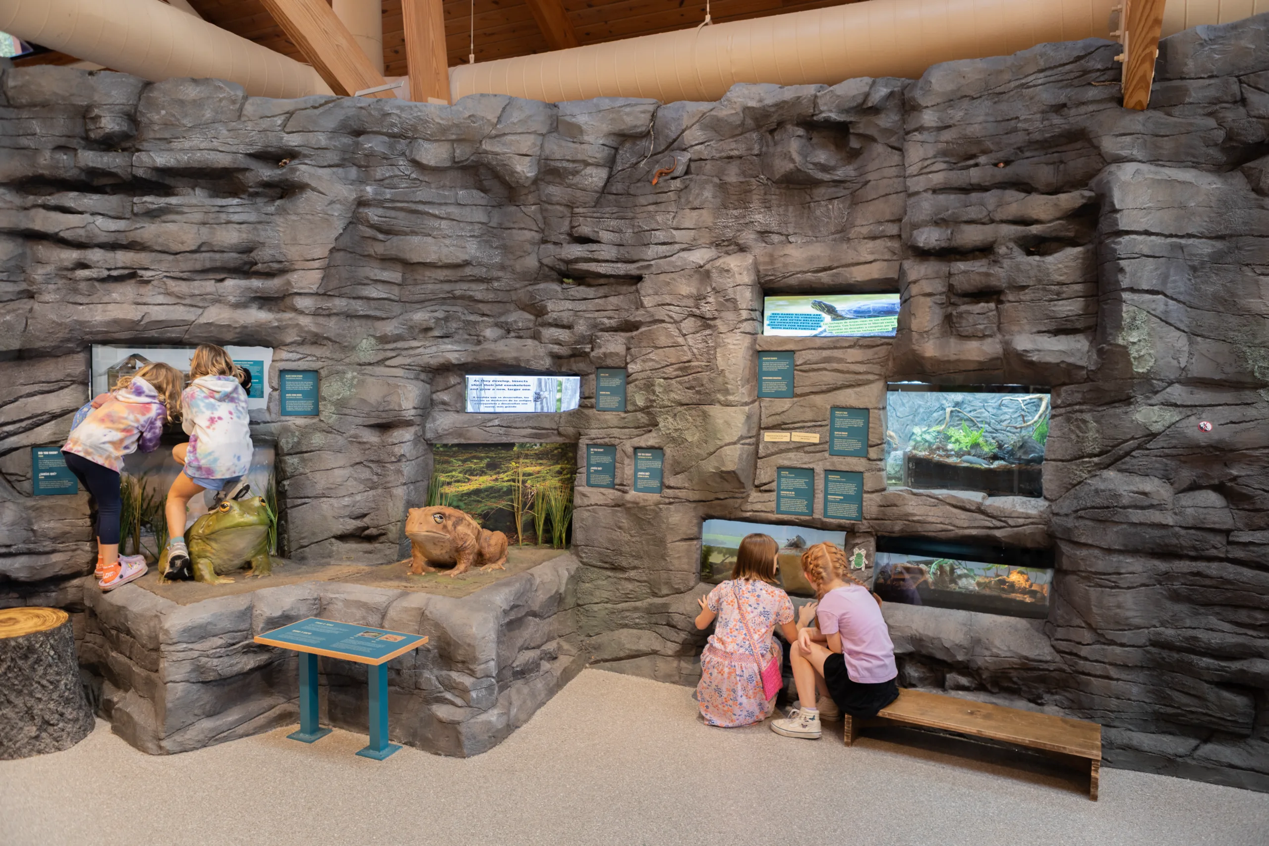 Sensory-friendly features, including optional sensory bags, support visitors who may need tools to feel more comfortable while exploring active areas like the sand pit. Additional exhibits highlight Virginia’s prehistoric past, nocturnal wildlife, and seasonal ecosystems, while rotating displays curated by Nature Center staff ensure ongoing learning. With its thoughtful blend of live animals, environmental design, and interactive interpretation, the Nature Center offers a welcoming and educational experience for the entire community.